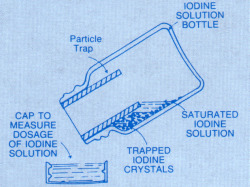 The unique bottle design keeps the iodine crystals from coming out of the bottle when you’re pouring the iodine out for water treatment. Your bottle cap is used to measure the required amount of Polar Pure needed to disinfect each quart bottle of water.